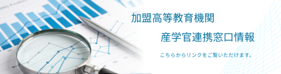 産学官連携事業の活性化のため、加盟高等教育機関の産学官連携窓口情報を掲載いたしました。