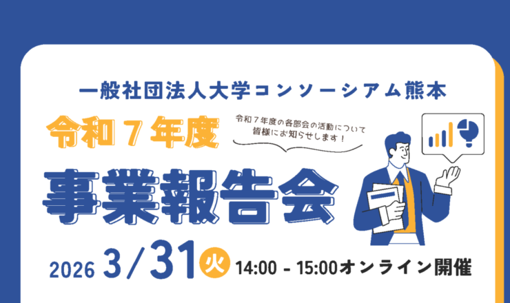 大学コンソーシアム熊本令和7年度事業報告会をオンラインで開催します。 令和7年度の各部会の活動を、加盟機関の教職員・学生の皆様及び地域...