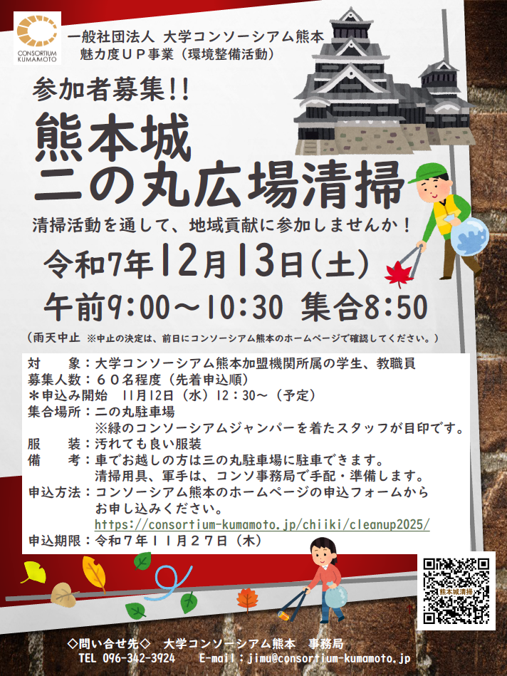 [参加者募集]令和7年12月13日(土) 魅力度UP事業 環境整備活動 「熊本城二の丸広場清掃」について