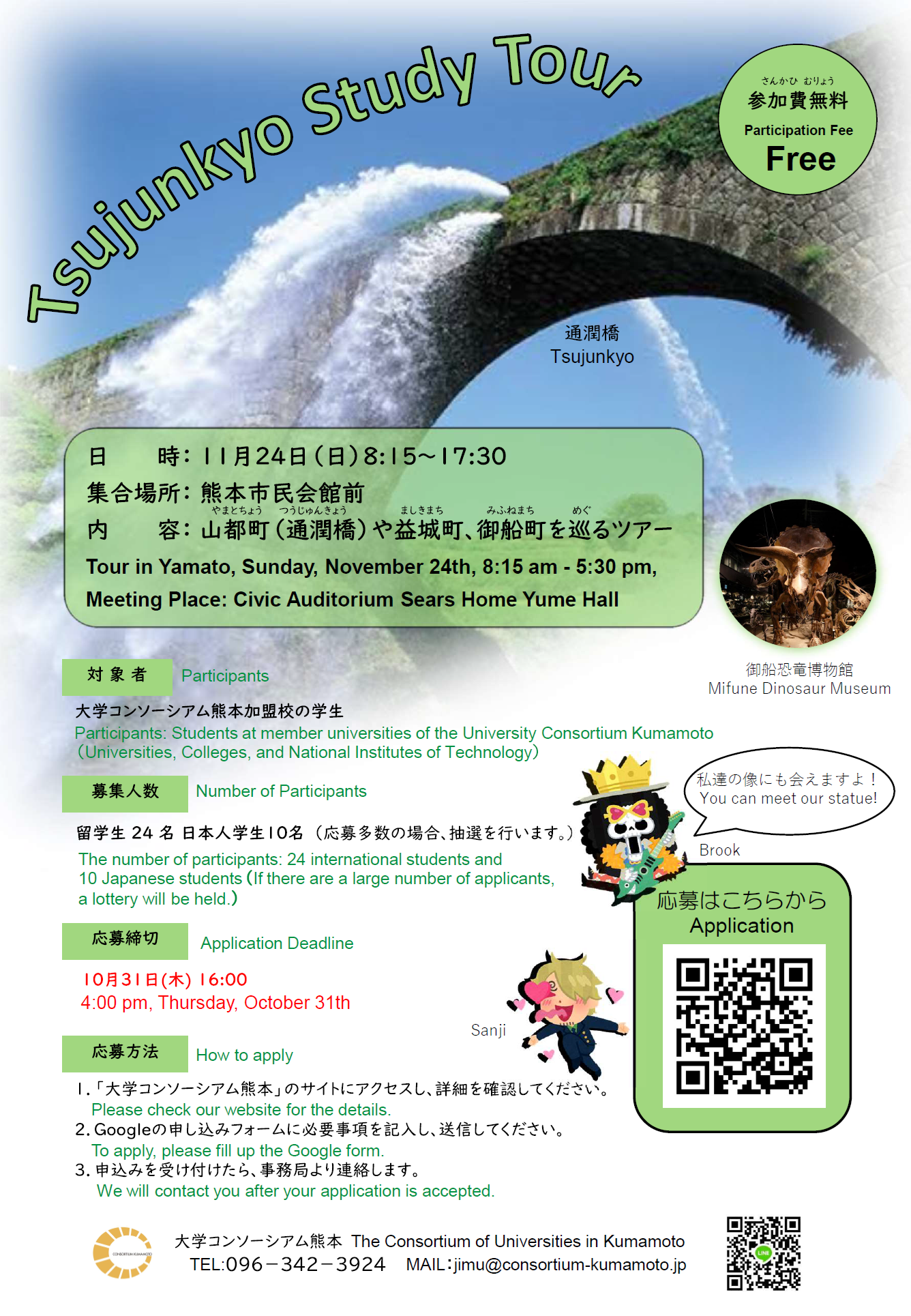 We will contact you by e-mail after applying for more information. Please register our domain “@consortium-kumamoto.jp”, because it may be in spam. Thank you in advance!