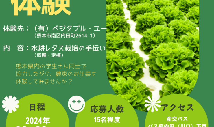 学生の皆さん! 学生企画委員が企画した「1日農業体験」に参加しませんか?他大学の学生と交流を深めながら、農業体験ができます。参加対象は...