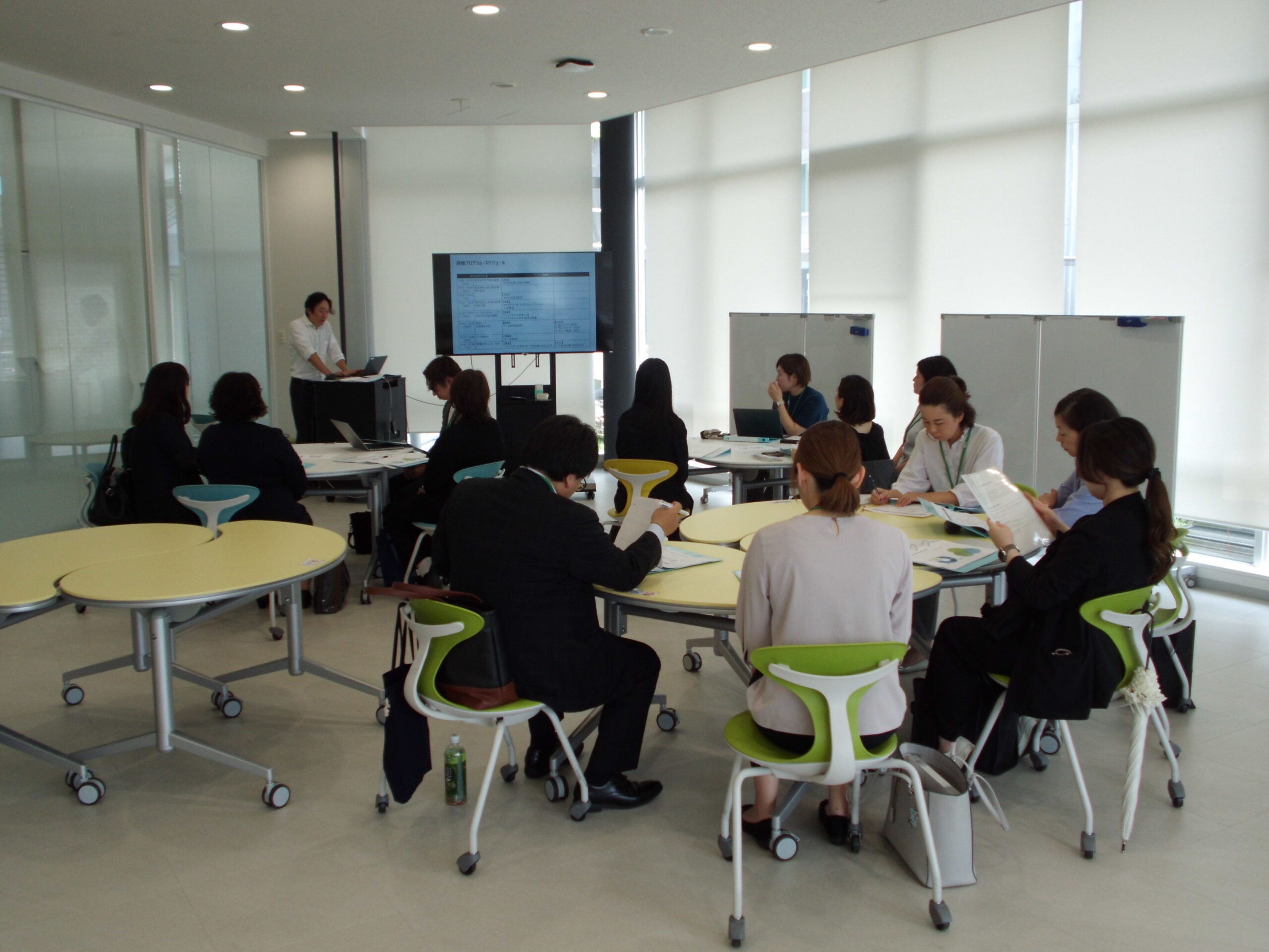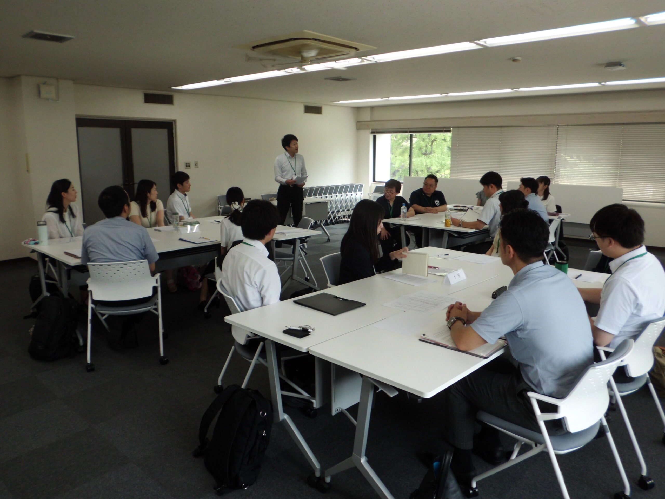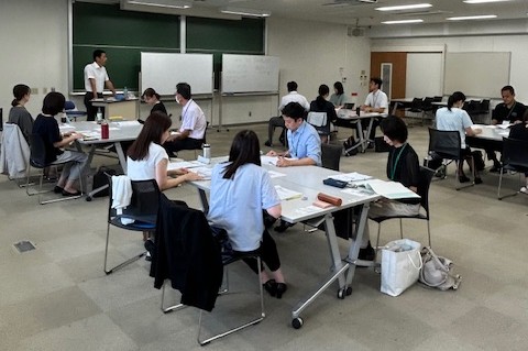 研修は、4班に分かれて、講義、グ ループ討議を繰り返し実施しました。
