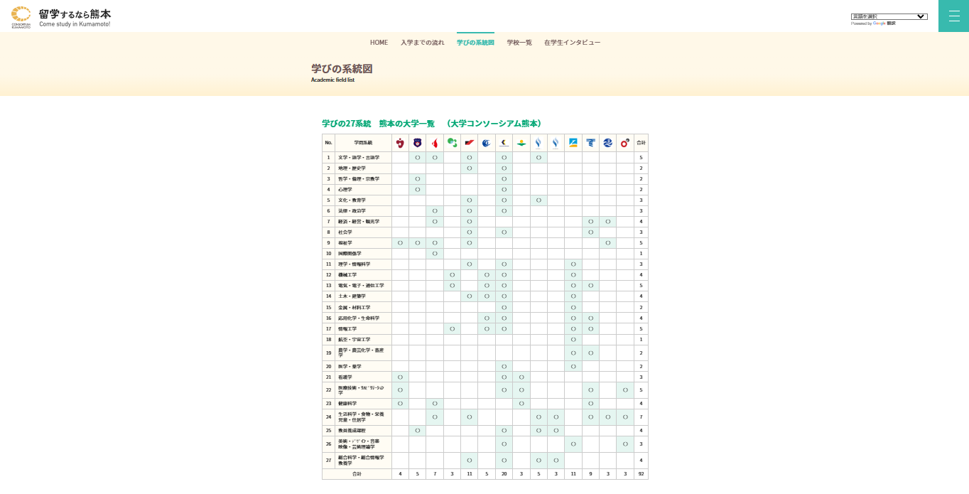 (A)大学コンソーシアム熊本 多言語ホームページ、留学生向け日本語版ページ