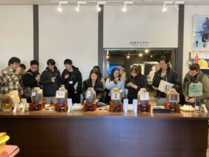 熊本国税局主催の熊本県内の大学に通う外国人留学生等を対象とした、「人吉・球磨の焼酎蔵めぐり」の日帰りバスツアーに参加した。人吉市では2つの酒蔵と、青井阿蘇神社の見学を行った。焼酎の歴史、製造過程を熱心に学び、焼酎独特の味を楽しみながら、会話も弾み、留学生同士交流を深めていた。留学生が球磨焼酎に親しみを持ち、熊本の焼酎に関する知識を深めてもらうことができた。