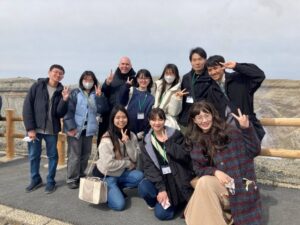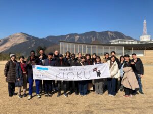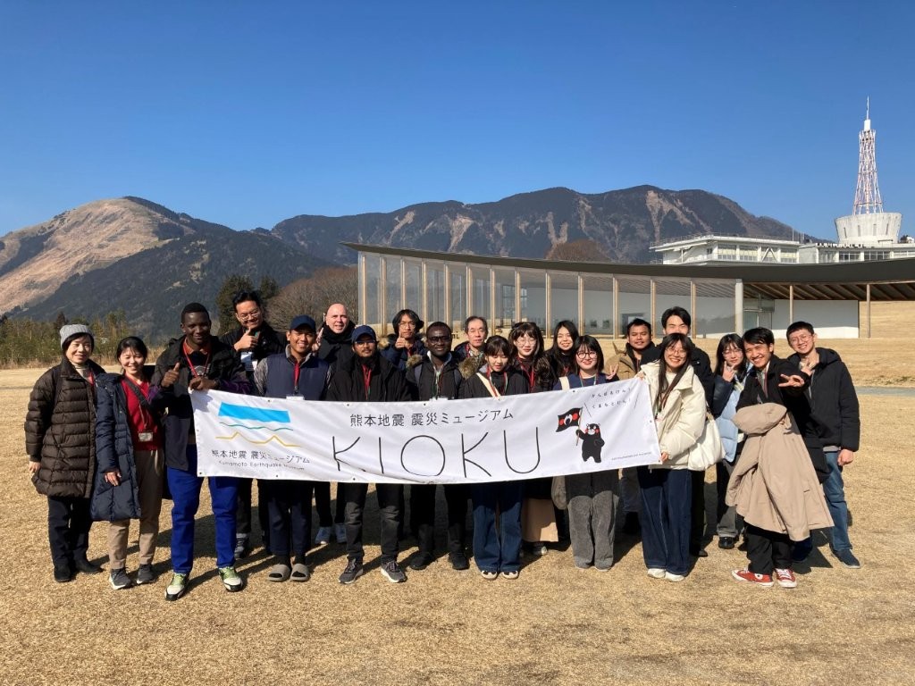 「熊本地震及び阿蘇火山について学ぶ」というテーマで、バスツアーを実施した。熊本地震ミュージアムKIOKUで、地震や断層についての説明を受けた後、熊本地震発生当時から復興の様子を動画で鑑賞し、旧東海大学阿蘇キャンパスを見学するなど、自然災害の脅威と準備の大切さを学んだ。午後は英語の通訳ガイドと一緒に、阿蘇中岳の火口見学を行った。火口見学ができるかどうかは、天候や火山ガスの影響により、当日にならないとわからなかったが、運良く晴れて、モクモクと湯気を上げる青い湯溜まりを見ることができた。野焼き直後の草原を見ながら、野焼きについてもバスの車内で説明を受けた。阿蘇火山博物館では学術顧問の鍵山恒臣先生の案内で、貴重なジオラマやカルデラの成り立ちについてのモデル、火山性の匂いがする珍しい石などを見学した。阿蘇についての理解を深め、留学生や日本人学生との交流を行うことができた。